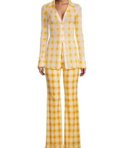 Rebecca Taylor Ombré Plaid Mesh Pull-On Pants