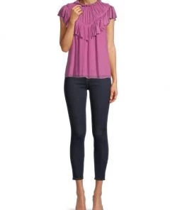 Rebecca Taylor Ruffled Mockneck Short-Sleeve Top Orchid