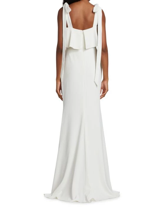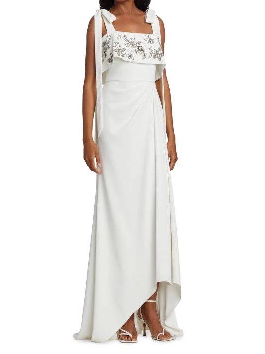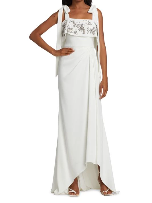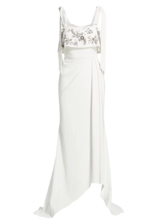 Beading and sequins embellish this crepe tie-strap gown.