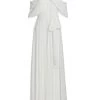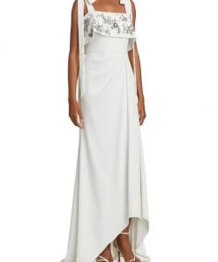 - Asymmetric gathered waist with front drape