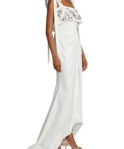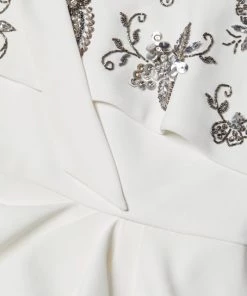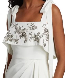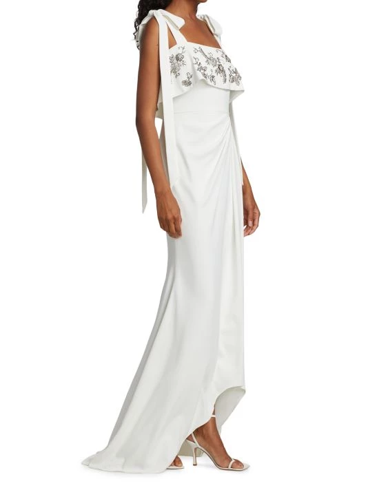 - Embellished ruffle overlay at bust