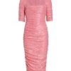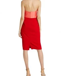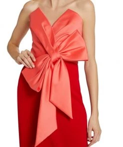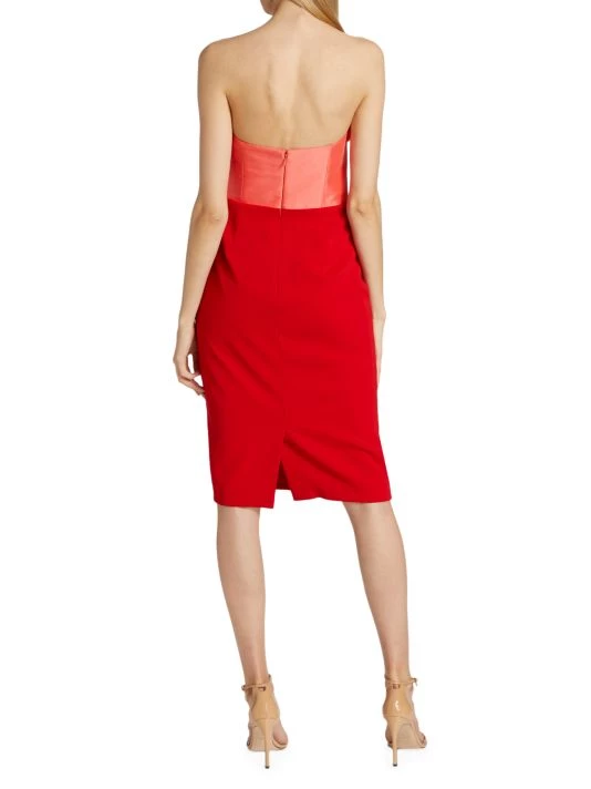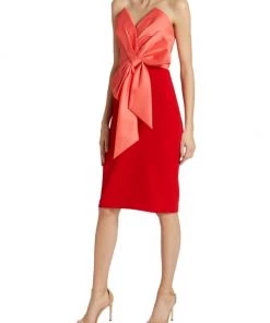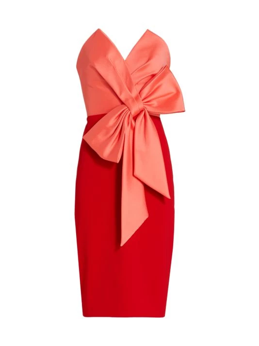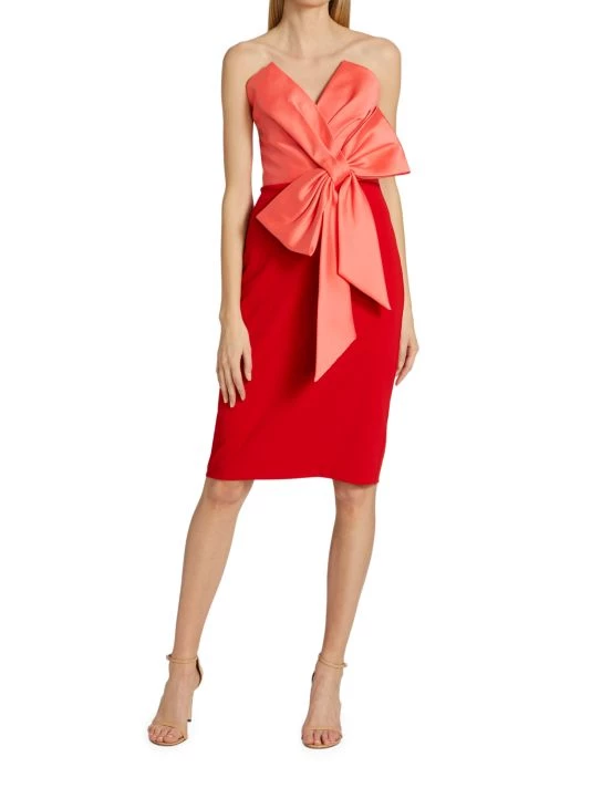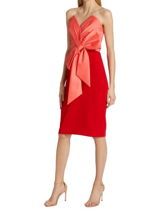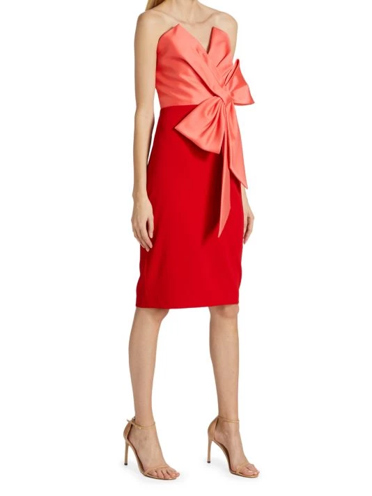 Designed with pieced construction, this cocktail dress features a bow-embellished taffeta upper with a sleek contrast skirt.