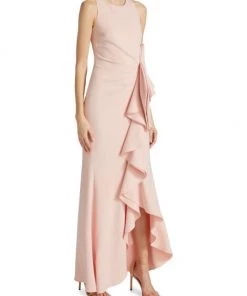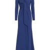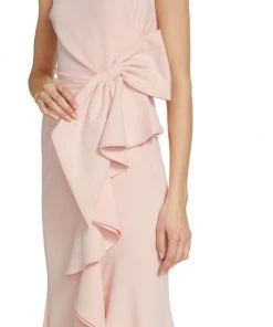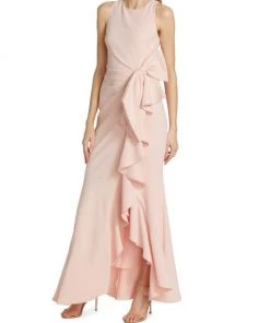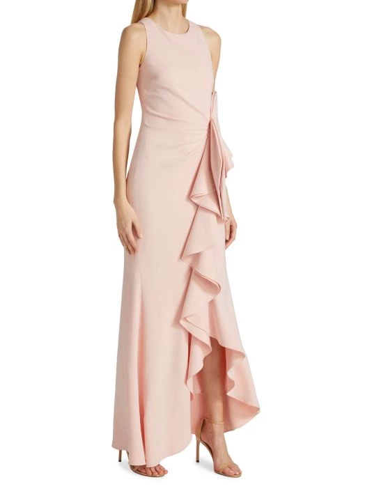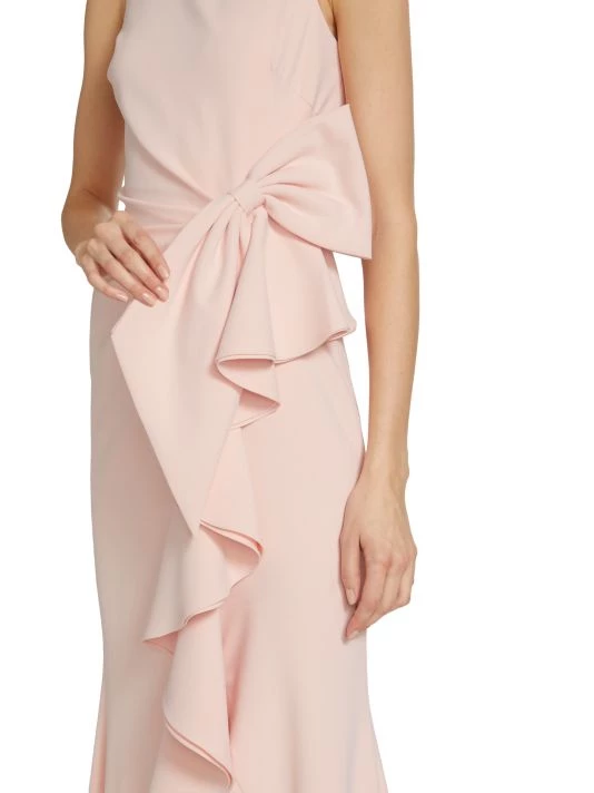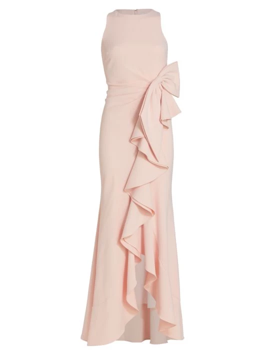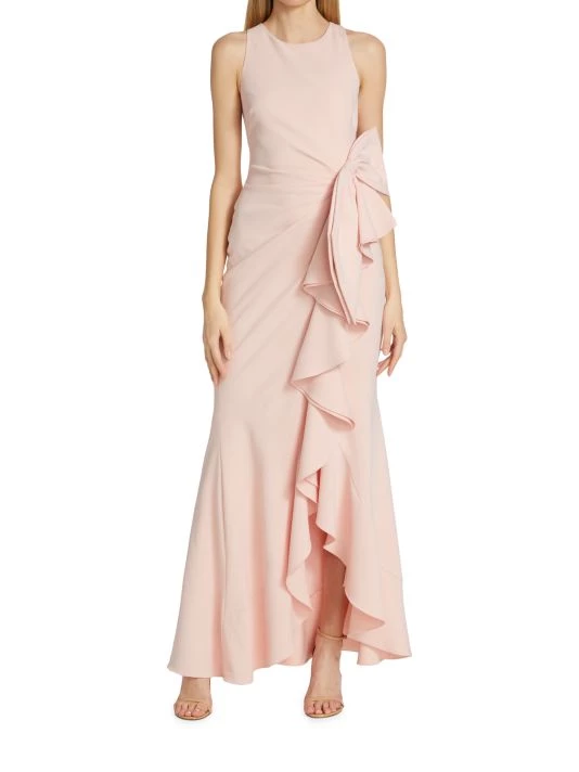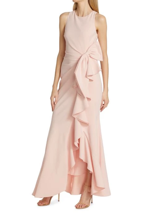 ONLLY AT SAKS. This crepe gown is designed with a ruffled split hem with a bow at the waist.