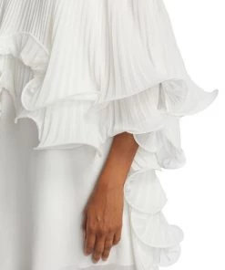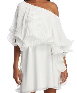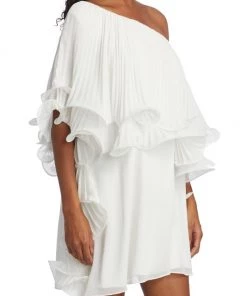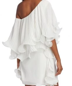 This minidress is made of flowing crinkled fabric with geometric layers.