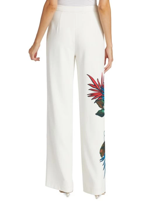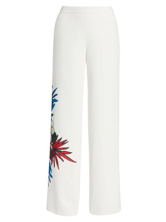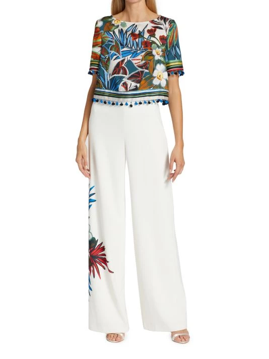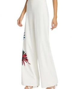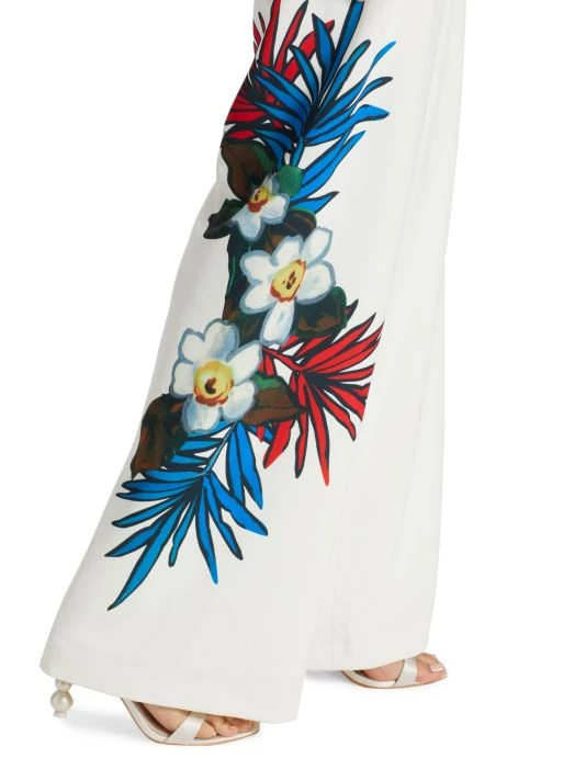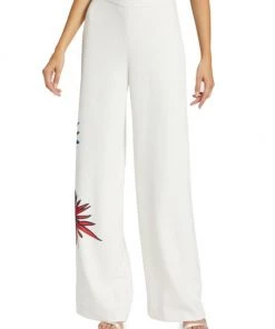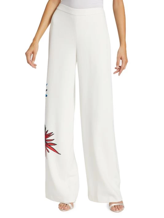 Elongating wide-leg pants with comfort banded waist, updated with floral print at the leg.