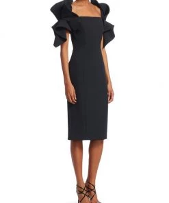 ONLY AT SAKS. Seamed dress enhanced with dramatic ruffle sleeves.