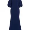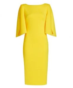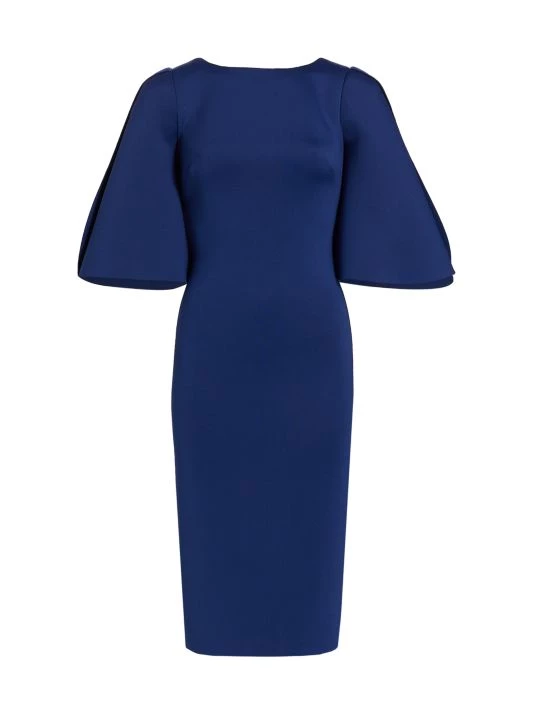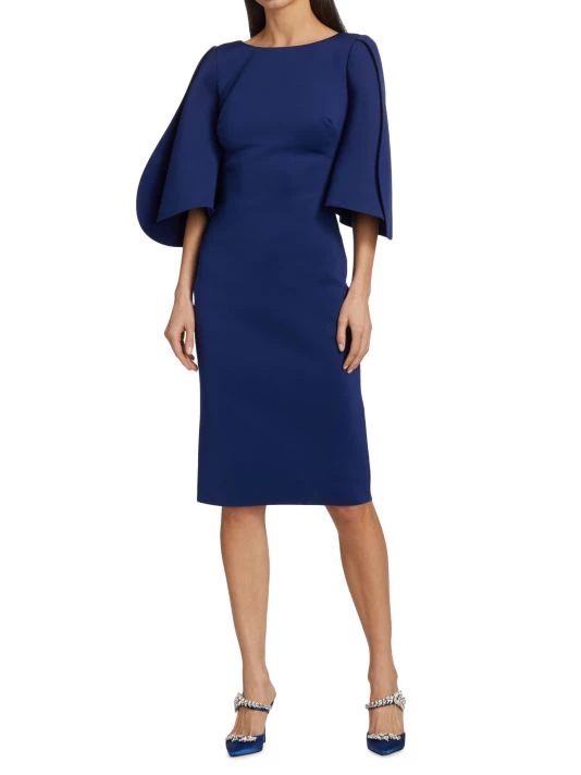 Fitted scuba sheath dress updated with overlapping petal-style sleeves and a chic boatneck.
