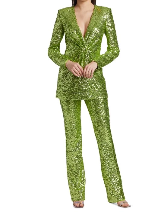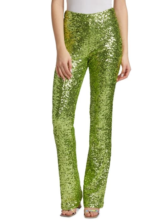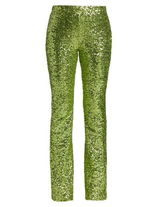 These fitted pants are encrusted with glistening sequins for a luxe look.