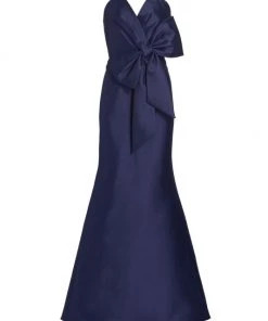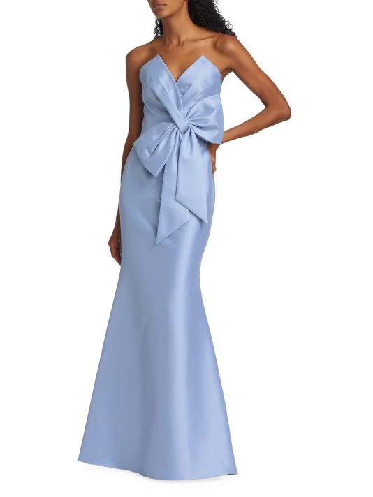 ONLY AT SAKS. Designed in a fit-and-flare silhouette, Badgley Mischka’s gown flaunts an elegant oversized bow. This floor-length piece is finished with a pointed sweetheart neck.