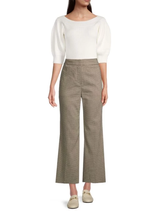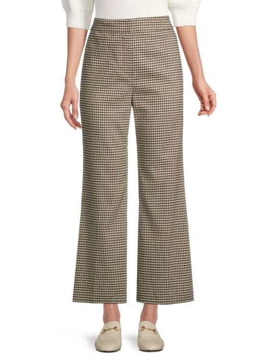 Allover checks cover Rebecca Taylor’s linen-blend pants, designed with a cropped flare silhouette.