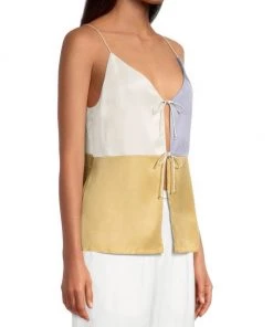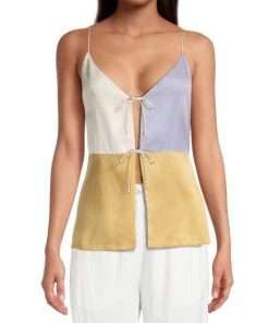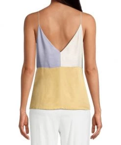 Crafted of woven twill fabrication, this Rebecca Taylor camisole is decorated with a four-panel colorblocked design.
