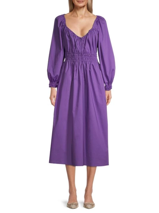 Crafted of cotton poplin, this Rebecca Taylor midi-dress is finished with a smocked waistline.