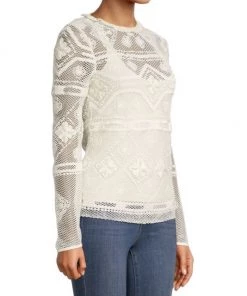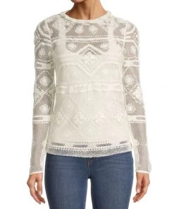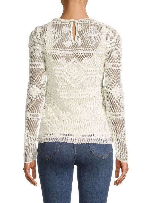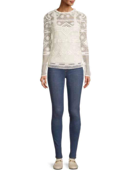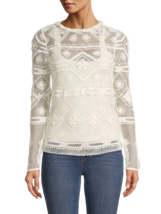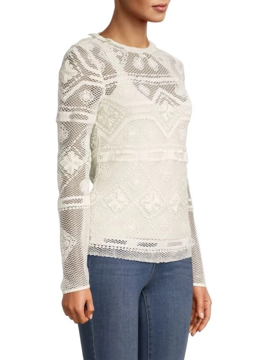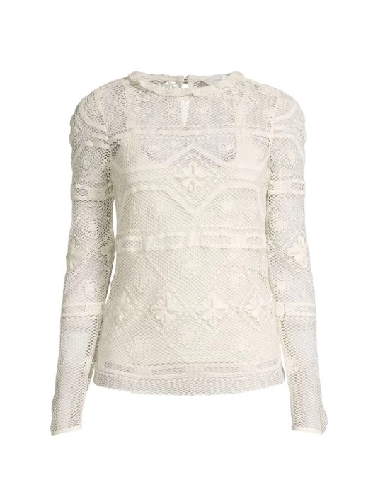 This long-sleeve top by Rebecca Taylor is crafted of cotton crochet with a neat crewneck.