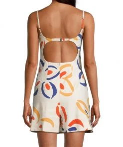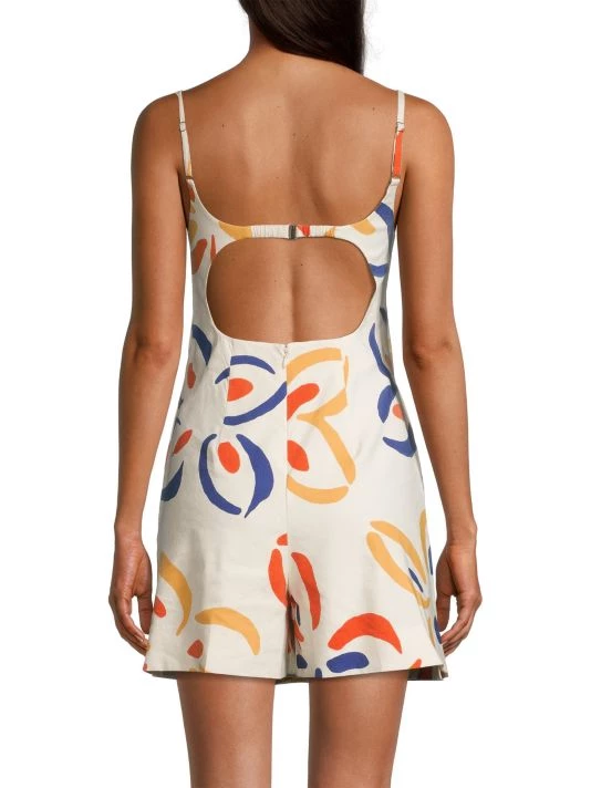 The Flame Fleur skirted romper from Rebecca Taylor is crafted of a linen blend in a hand-painted floral print. A rounded back cut out and side on-seam pockets finish this versatile look.