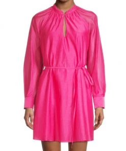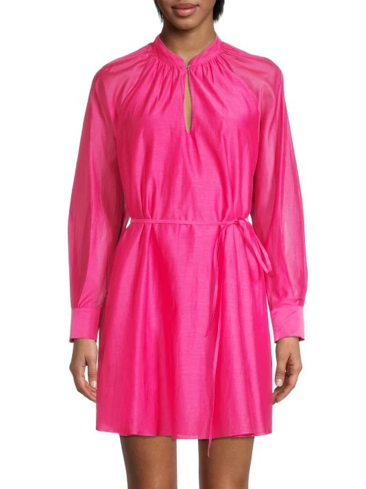 Crafted of luxurious cotton and silk, Rebecca Taylor’s long-sleeve dress is cinched with a dainty waist belt. This relaxed-fit piece is detailed with a front keyhole for a flattering touch.
