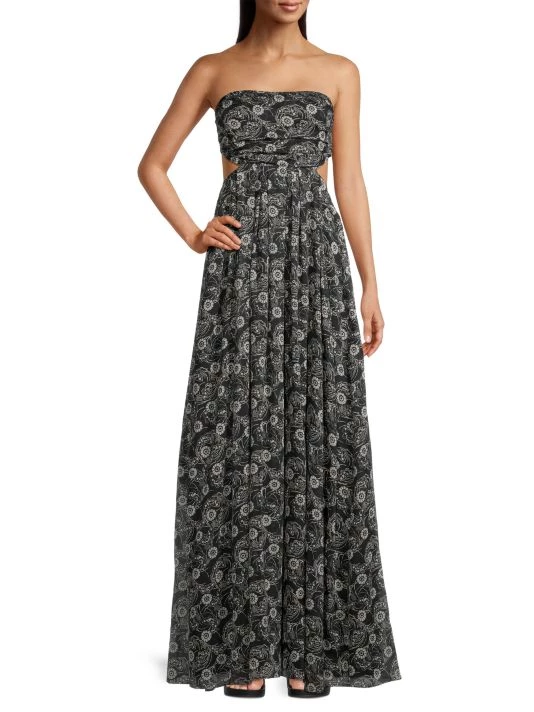 Crafted of luxurious cotton and silk, Rebecca Taylor’s Monarch Fleur maxi dress is designed with flattering waist cutouts complemented by an oversize back tie.