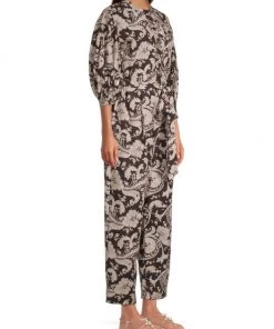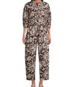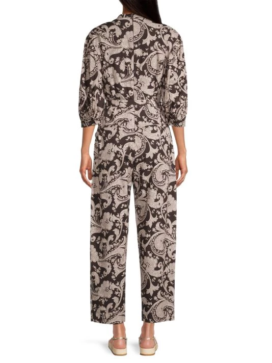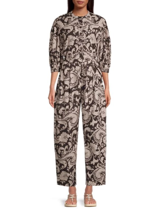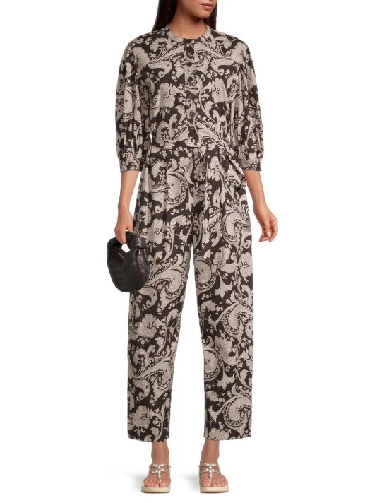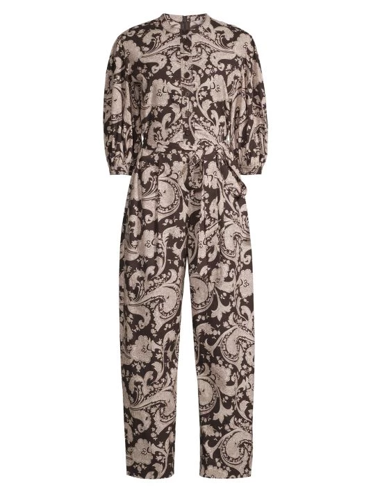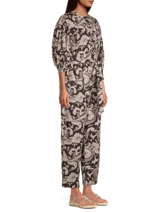 Rebecca Taylor’s jumpsuit features contrast paisley print and a flattering self-tie to define the waist.