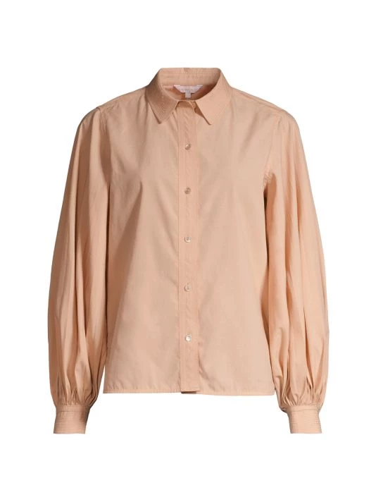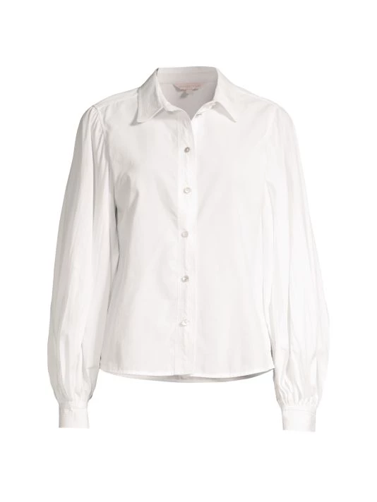 Crisp button down shirt with pleating at puff sleeves and back yoke.