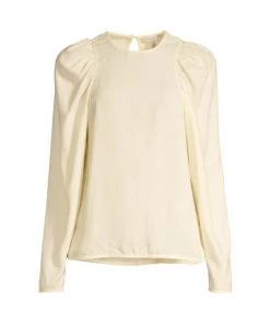 Lightweight top framed with romantic puff-style sleeves, with elegant keyhole at back.
