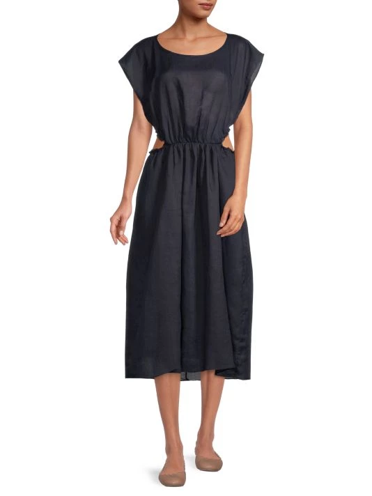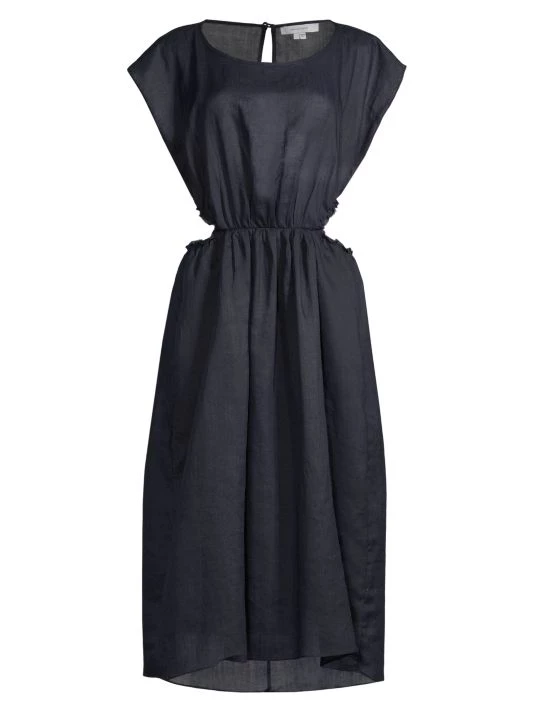 Crafted of breathable ramie, Rebecca Taylor’s midi dress features a flattering waist cut out with ruffled edges.