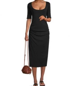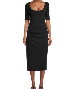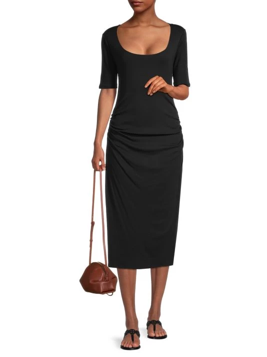 Ruched sides lend shape to Rebecca Taylor’s stretch jersey midi dress.