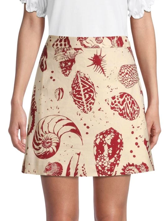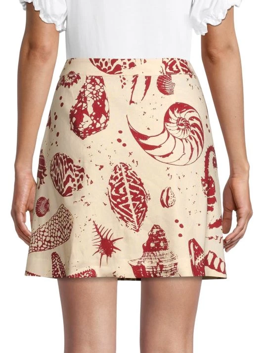 Crafted of a stretch-linen blend, the Sea Shore miniskirt by Rebecca Taylor is decorated with a seashell print.