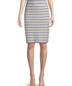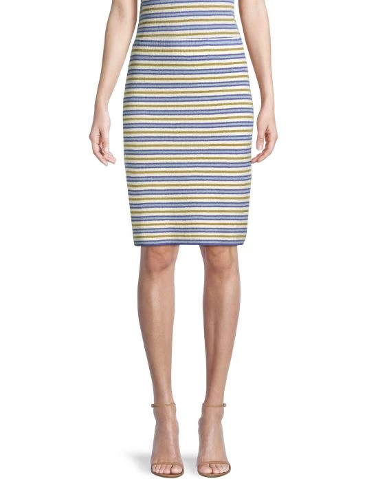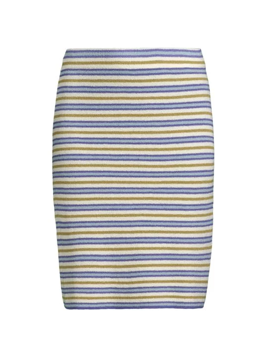 Crafted of soft striped boucle, this Rebecca Taylor skirt features a high-rise, pull-on waist. Rib-knit trim completes this fitted style.