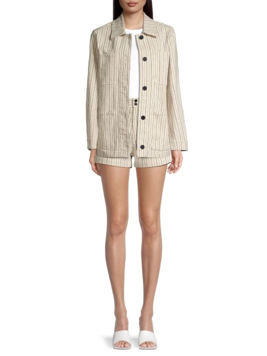 These striped shorts from Rebecca Taylor features a high-rise waist with a double-button closure. Hip welt pockets and patch pockets finish this polished style.