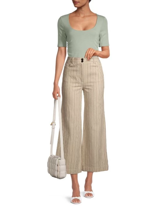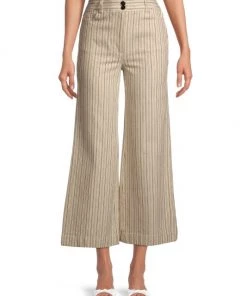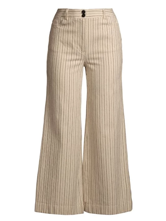 Designed with a cropped wide-leg silhouette, Rebecca Taylor’s stretch jeans feature vertical stripes for dimension.