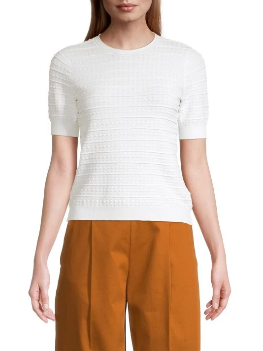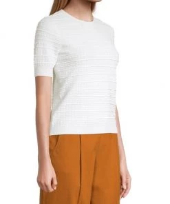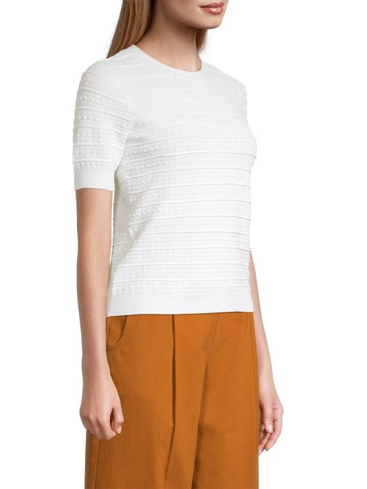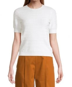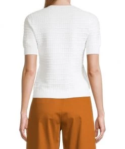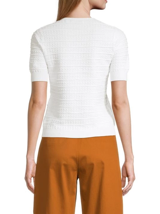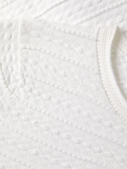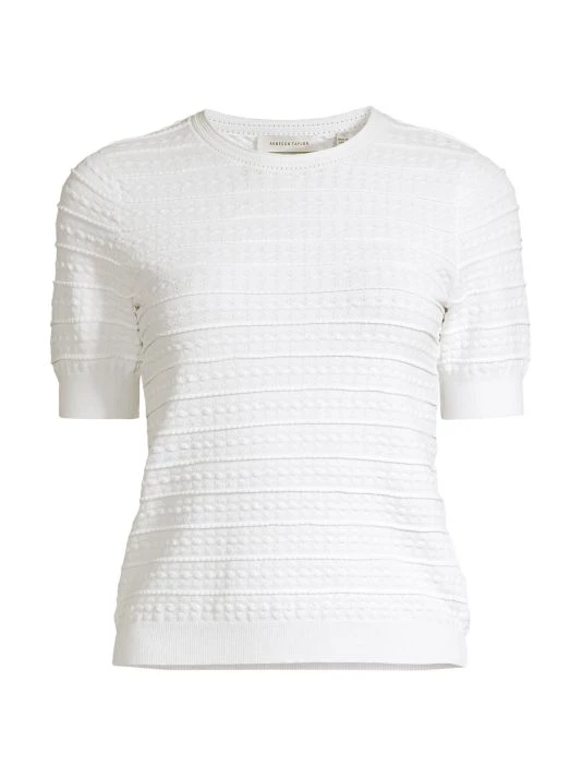 Textured patterning lends dimension to Rebecca Taylor’s knit lace sweater.