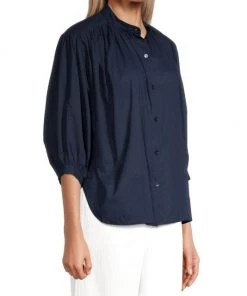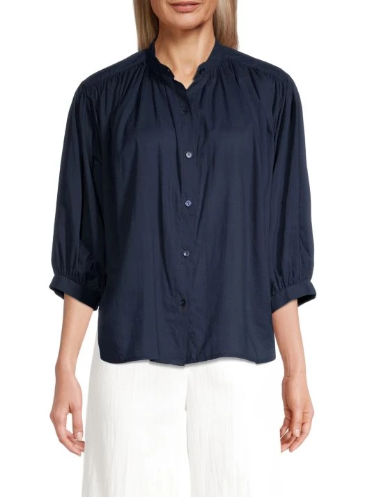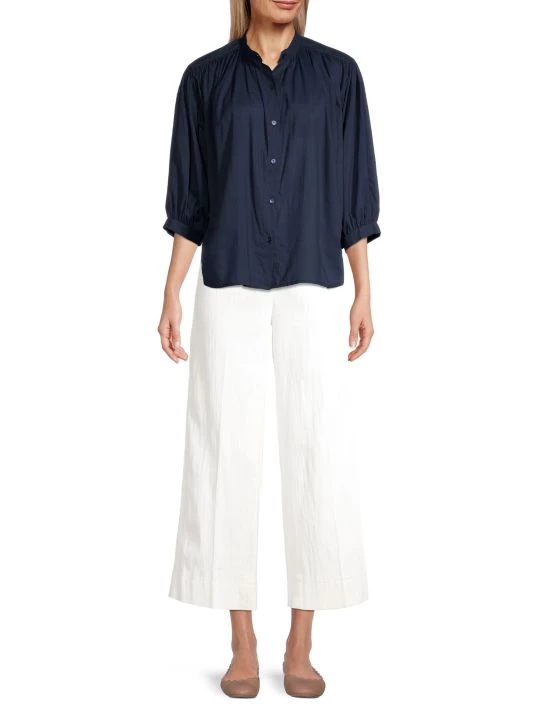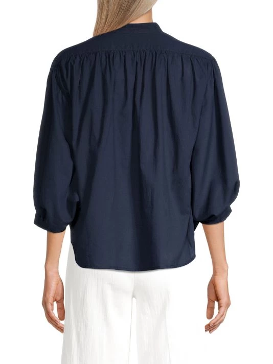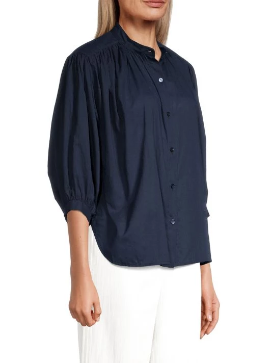 Rebecca Taylor’s cotton button-up shirt is designed with three-quarter sleeves and a curved hem.