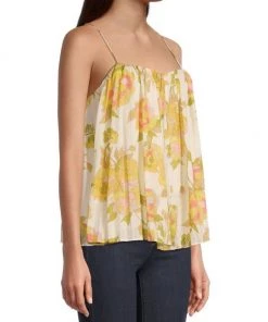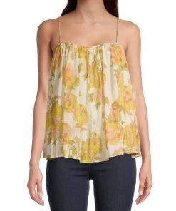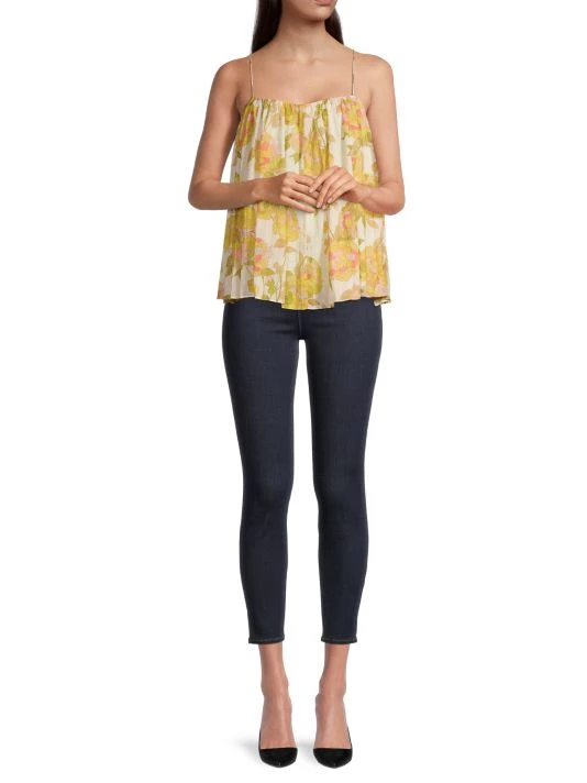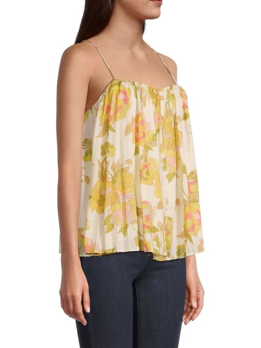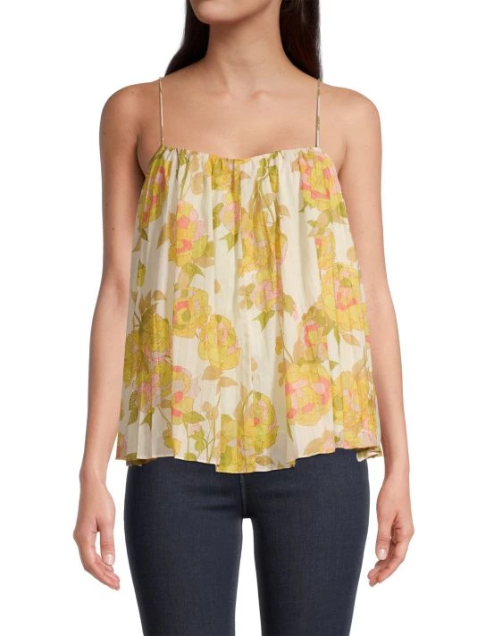 This airy pleated tank from Rebecca Taylor features a light peony print and thin spaghetti straps.